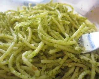 I love pesto. It's the hallmark of summertime. Walk outside, pick basil, arugula or whatever you have, whir in food pro with nuts, Parmesan, garlic, olive oil, salt and pepper, toss it with pasta and you've got a meal made in heaven. My husband made this batch w/ arugula and cashews. DELICIOUS!