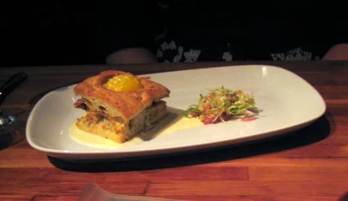 For dessert, the ginger lime cheesecake creme caramel (yes, really)! Delicious, although the cookie crust was a little tough.