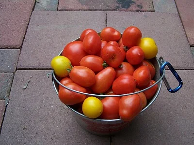 We usually are swimming in tomatoes by the end of the summer. I do start to get sick of them eventually, but right now I can't wait for them to come pouring in. I have so many favorite recipes and of course, they're delicious with just a little salt!
