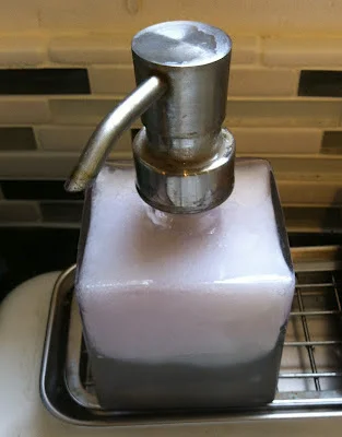 If the soap is too hard, you can take some beaters and blend it while adding just a little bit of water until the consistency is more like liquid soap.
