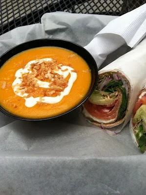 Curried Carrot Soup and Smoked Salmon Wrap