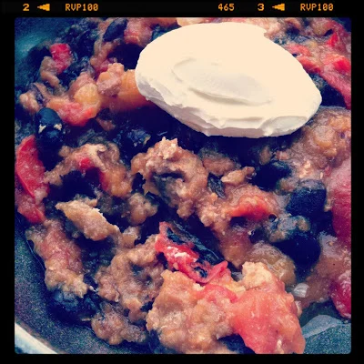 An added bonus of no pre-cooking, is no added fat. The texture from the cooked squash gives this chili a really thick and creamy consistency that's just right for the start of fall. You can kick this recipe up by adding hot sauce, cayenne, or hot peppers if you'd like. With a 2 1/2 year old, we play it safe, and add our hot sauce at the table!