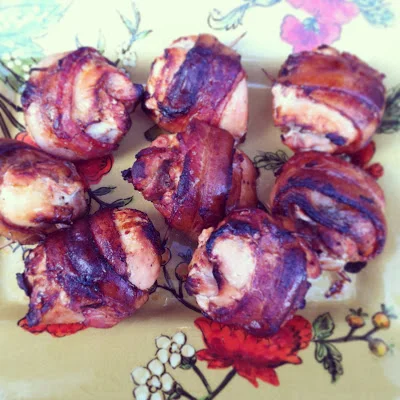 I needed to get out of my dinner rut, and what better way to do that than anything wrapped in bacon? I had already done my crockpot chili with squash, and my usual Asian inspired noodles, so smoky, barbecue flavors seemed appropriate for my next weeknight meal. I prepped the chicken before I left for work. It's a super easy dish that's tasty enough for a dinner party but easy enough to whip up anytime. Caution: don't forget to use aluminum foil on your baking dish for easy clean up!
