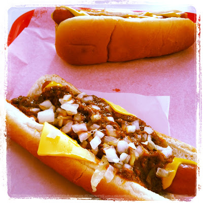 Pink's Chili Cheese dog